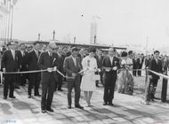 무역진흥 확대회의에서 근로자 복지제도 우수업체에 단체표장을 하는 박정희 대통령