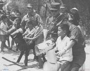 남강댐 준공과 국도신설, 수로공사 등을 목표로 모인 국토건설단원들이 열심히 일하고 있는 모습