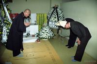 "허위감정에 책임지고 국립과학수사연구소를 해체하라"는 구호를 외치며 시위하는 재야단체회원들