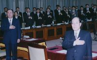 - 고 김기설씨의 장례식과 노제를 마친 후 유가족, 재야인사, 학생 3천여명이 12일 하오 대형영정을 앞세운 운구행렬을 따라 장지로 향하고 있다.