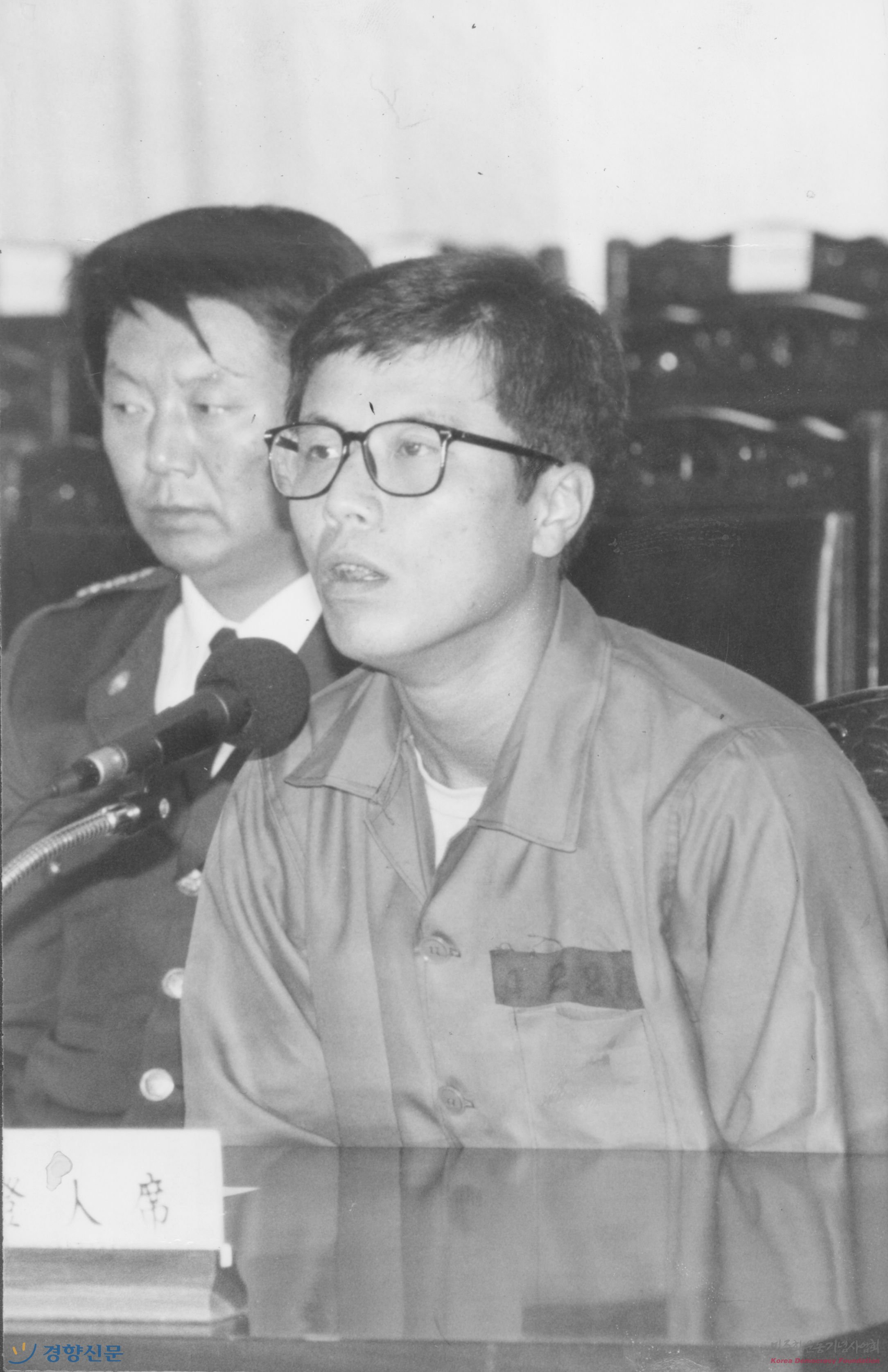 유서대필 사건으로 복역중인 강기훈이 증인으로 출석, 진술하는 모습