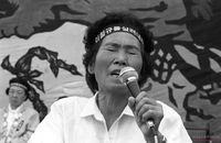 화재로 인하여 페허가 된 창신동 재개발지구 천막촌에서 울음을 터뜨리는 이재민들