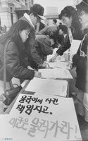 - 생산자 및 기증자가 ‘박용수’인 사진의 사용은 구매신청을 클릭하여 직접 사진 구매 신청을 하실 수 있습니다. 생산자 및 기증자가 ‘경향신문사’인 사진의 사용은 경향신문사 담당자(02-3701-1635)를 통해 구매하실 수 있습니다. 그 외의 생산자 및 기증자는 민주화운동기념사업회 사료관 담당자( h_jungwon@kdemo.or.kr / 031-361-9586 )에 문의바랍니다.