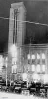 사다리 차를 타고 올라가 파레스 호텔의 화재를 진압하는 소방관