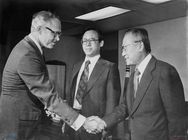 리차드 워커 주한미국대사가 이범석 외무장관을 만나 KAL기 피격사건의 사후대책을 협의하기 위해 외무부로 들어서는 모습