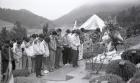 모교 운동장을 도는 대구지하철 가스참사로 숨진 영남중학교 학생들의 운구 차량