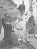 겨울을 맞아 얼어붙은 논위에서 스케이트타는 농촌의 어린이들