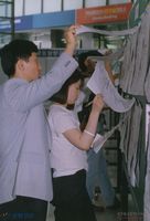 시민들에게 유인물을 나눠 주며 에이즈 추방 캠페인을 벌이는 한국 에이즈 연맹 회원들