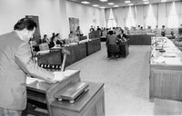 제일은행 매각발표를 하는 진동수 심의관, 이헌재 금감위원장, New bridge capital 아시아 책임자