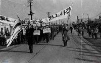 삼화부도 처리에 대해 상업은행의 책임을 요구하는 시위를 하는 모습