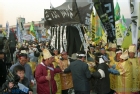 가족계획캠페인을 벌이며 전단지를 나눠주는 보건소 간호원들
