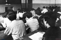 소선거구제 및 민주 총선 쟁취를 위한 국민결의대회에서 연좌시위를 벌이는 사람들