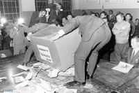 중앙선관위서 붙인 후보자 등록 공고를 보고 있는 사람들