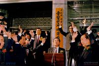 민주당의 대선 중앙선거대책위원회 현판식 모습