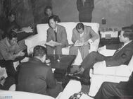 리서치드라마 갈대에 응답엽서가 쇄도하여 갈대 출연자들이 엽서추리기에 여념이 없는 모습
