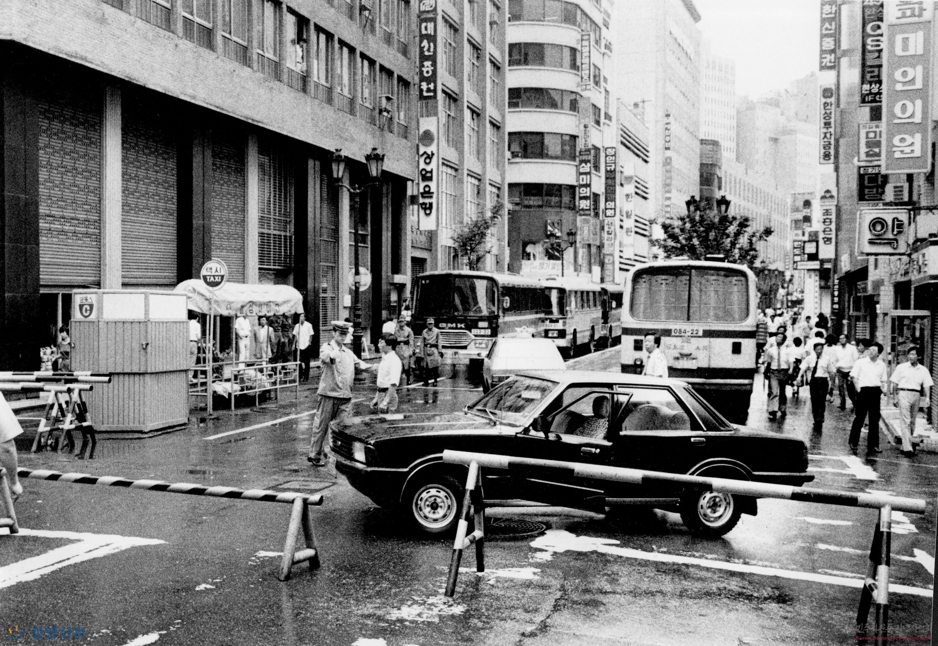 명동 입구에 바리케이드를 치고 성고문 폭로대회를 봉쇄한 경찰
