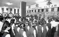 홍제동 성당에서 양심수 전원석방 수배해제촉구결의대회를 하고 있는 모습