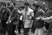 광주 유세장에서 김영삼 대통령 후보의 연설을 듣고있는 시민들