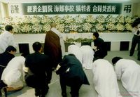 시위 도중 사망한 학생이 주검 위로 학생모가 놓여 있는 모습