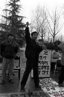 인질로 잡은 민정당원들을 공개사과 시키고 있는 평민당원들