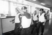 제7대 대통령 선거 때문에 실랑이를 벌이는 사람들을 통제하고 있는 헌병의 모습