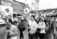 김대중을 지지하는 시민들이 시위를 벌이자 이를 진압하는 경찰들의 모습