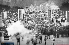 의사당 앞에서 마산학생석방 등을 외치며 연좌투쟁을 하고 있는 고대생들