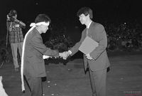 부여지역 공화당 당선인사와 악수를 나누는 김종필 총재의 모습