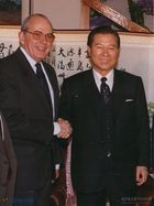 무죄언도를 받은 최응복 피고에게 악수를 청하는 임흥순 피고