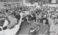 길거리에 앉아서 고 이한열 열사를 추모하는 시민 학생들