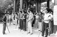 광화문에서 전투경찰의 저지를 받자 강력히 항의하는 미문화원 사건 피고인 가족들