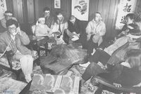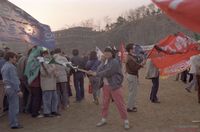 대법정으로 향하는 미문화원 점거농성 사건 피고인들이 강력히 저항하는 모습