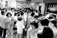 집회에 참가하려는 시민 학생들이 전경들과 대치하고 있는 모습