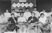 여당의 국가보위에 관한 특별조치법을 저지하기 위해 논의하고 있는 신민당 의원들 모습
