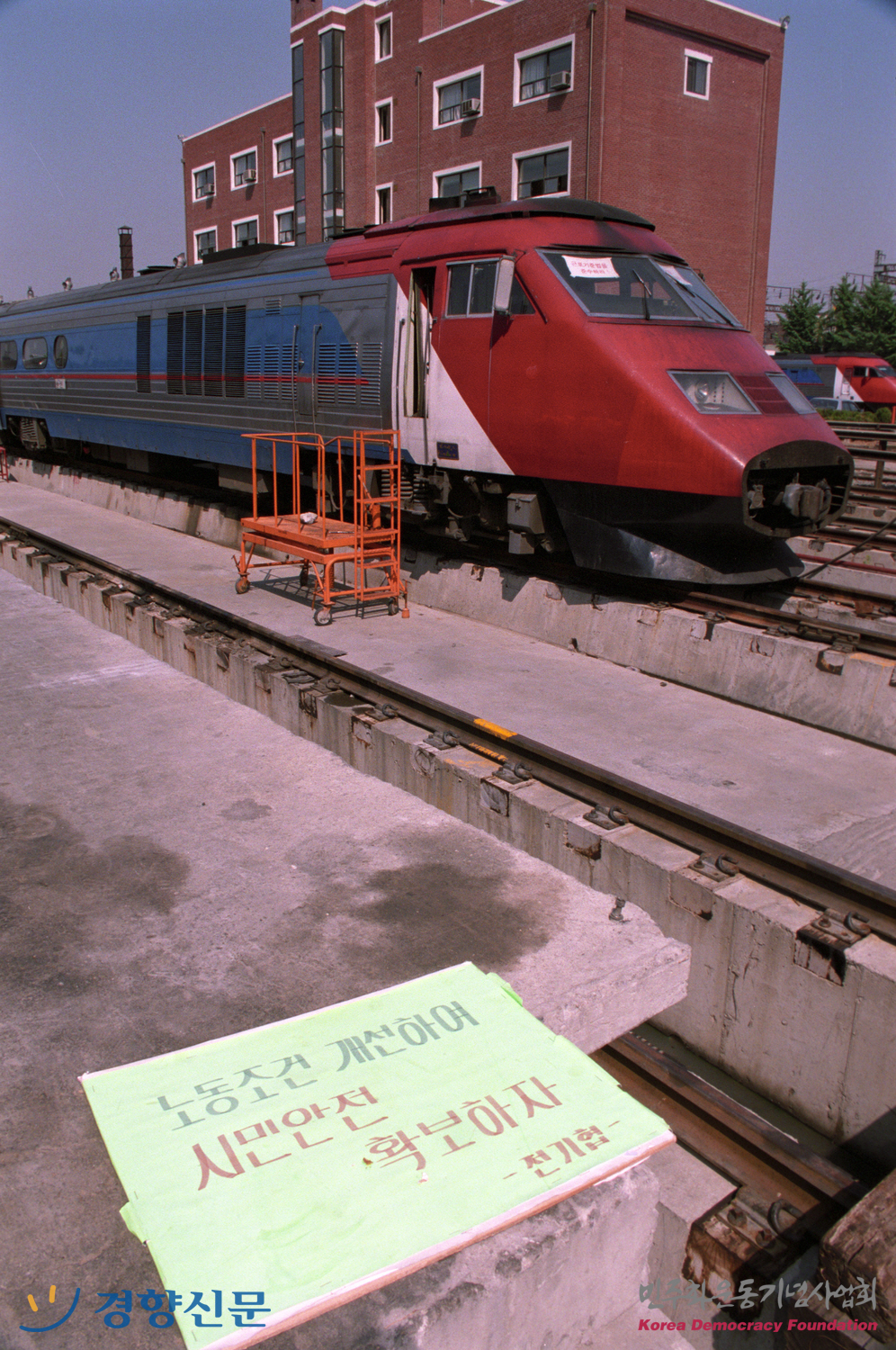 용산역에 전지협이 붙여놓은 "노동조건 개선하여 시민안전 확보하자" 는 내용의 현수막