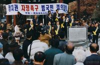진보정치연합 회원들의 노태우 연희동 자택 항의 방문