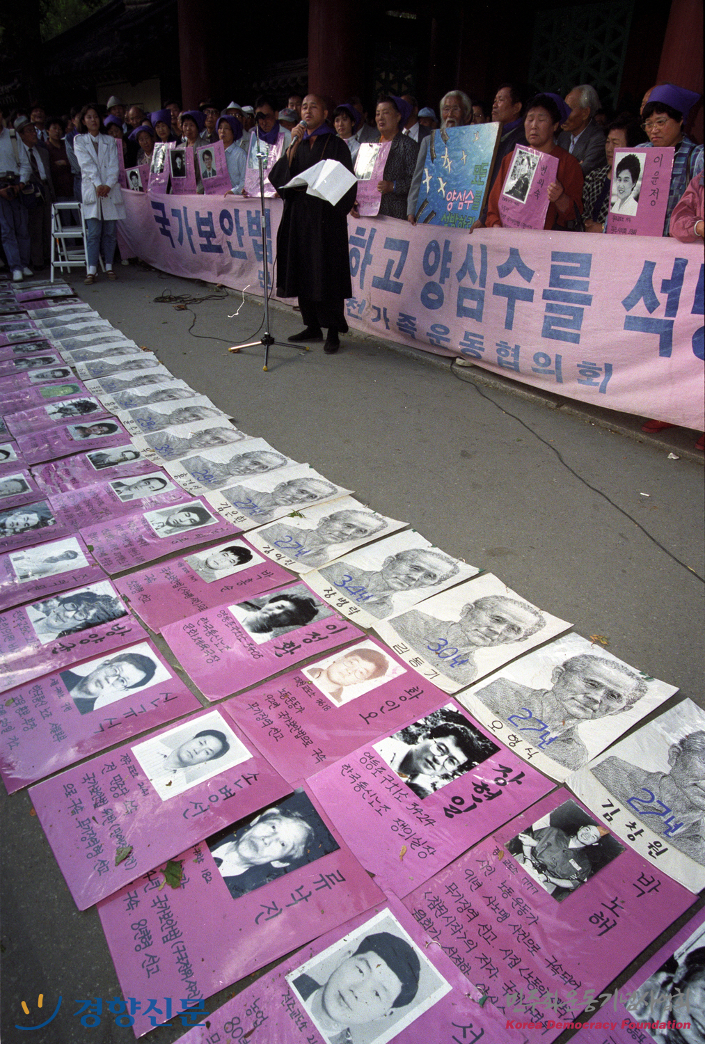 국가보안법 철폐집회 현장에 놓인 국가보안법 구속자들의 사진들