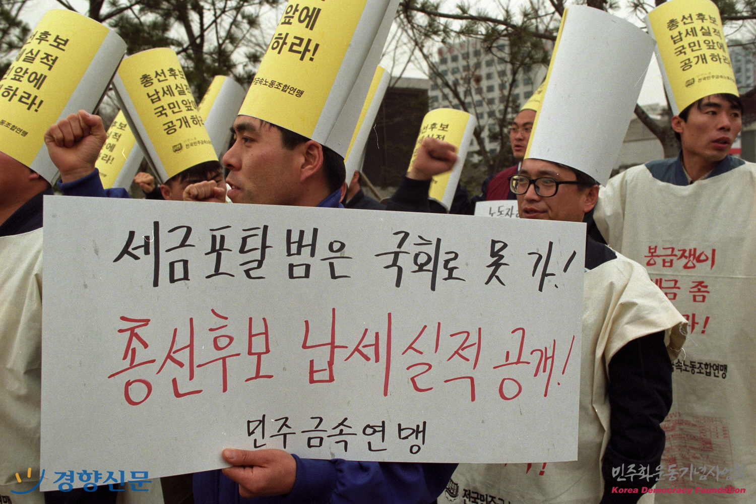 전국민주금속노동조합연맹 총선후보납세실적 공개 성토