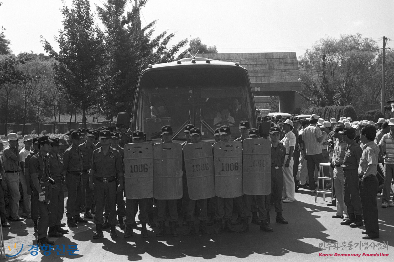범민족대회 남한측 대표단을 태운 버스를 막아선 의무경찰들