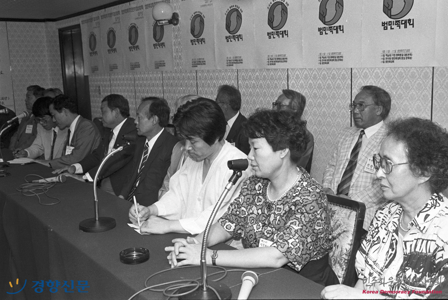 기자회견을 하는 범민족대회 예비회담 참가 대표단