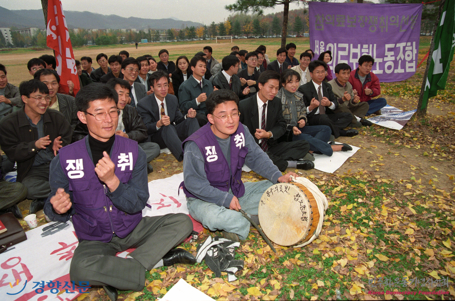의료보험 노동조합원들의 농성 모습