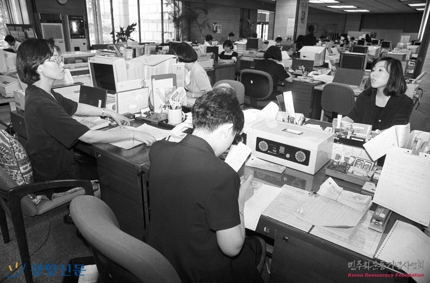 인사제도에 대한 항의로 검은옷을 입고 근무하는 한국은행 직원들