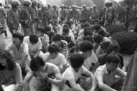 쌀 개방 반대를 외치며 가두 시위하는 서강대학교 학생들