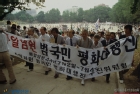 쌀 수입 반대를 외치며 가두 행진하는 농민들의 모습