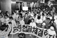 보도까지 들어찬 시위대와 전경대의 폭력적인 대립