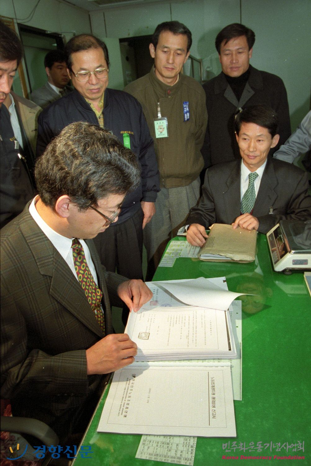 민주노총의 사업장 쟁의 발생 신고서를 접수 받는 노동부 직원