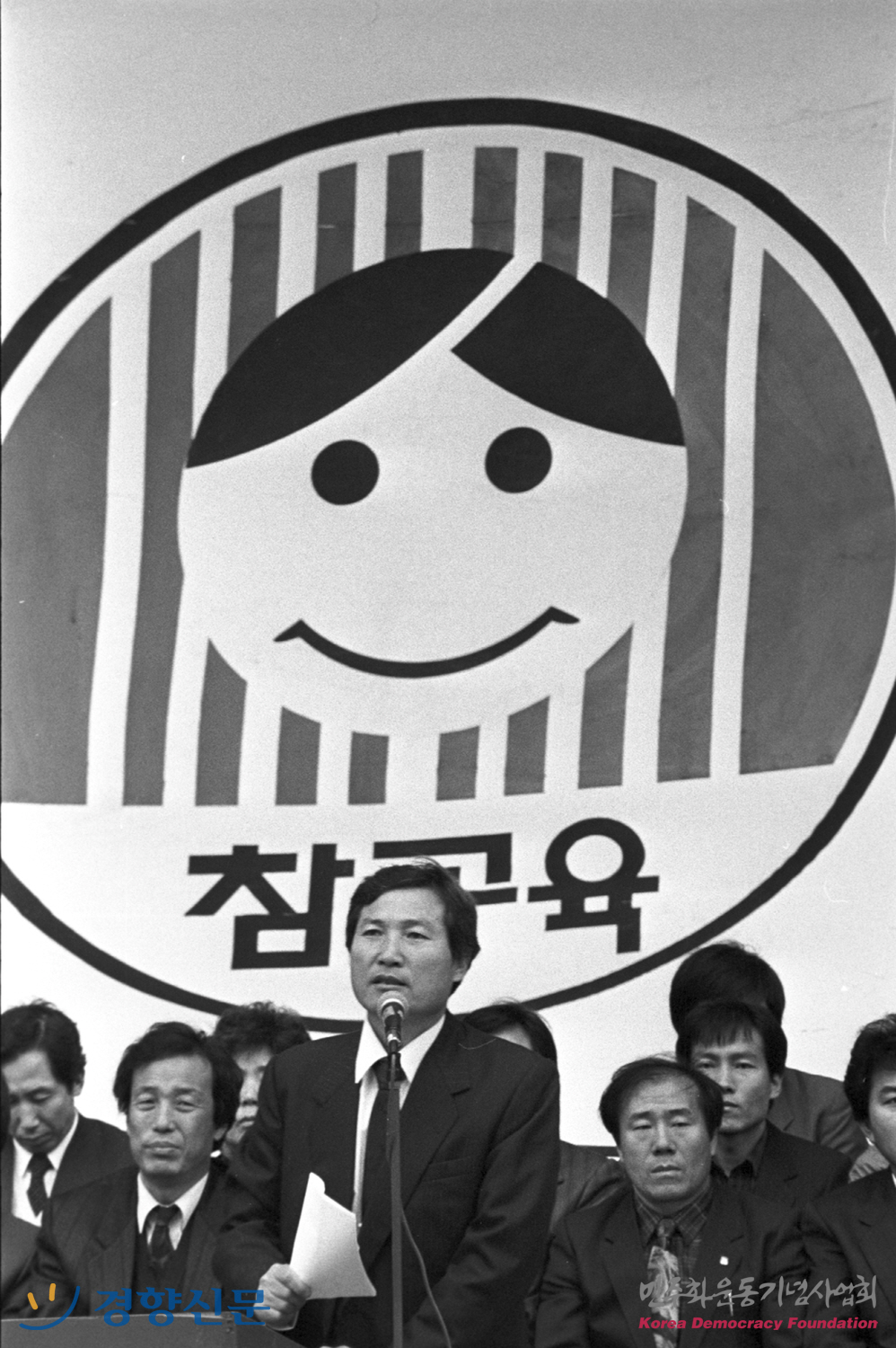 서울대에서 열린 전국교사대회에서 발언하고 있는 전교조 대표자