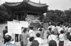 거리에서 구호를 외치며 시위를 하는 전교조 소속 교사들