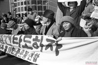 임금인상을 요구하는 대우자동차 근로자들의 시위현장