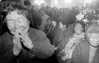 노점상철거 반대대책위 발족식에 참석하여 구호를 외치는 노점상인들